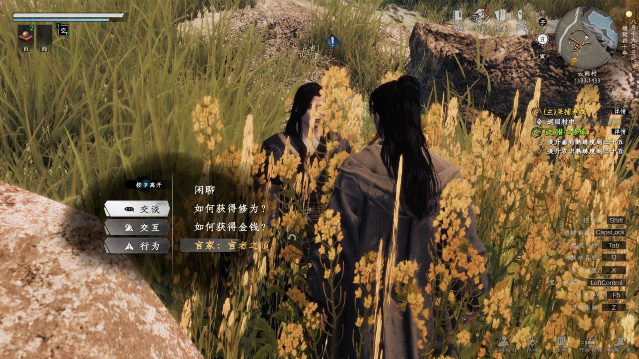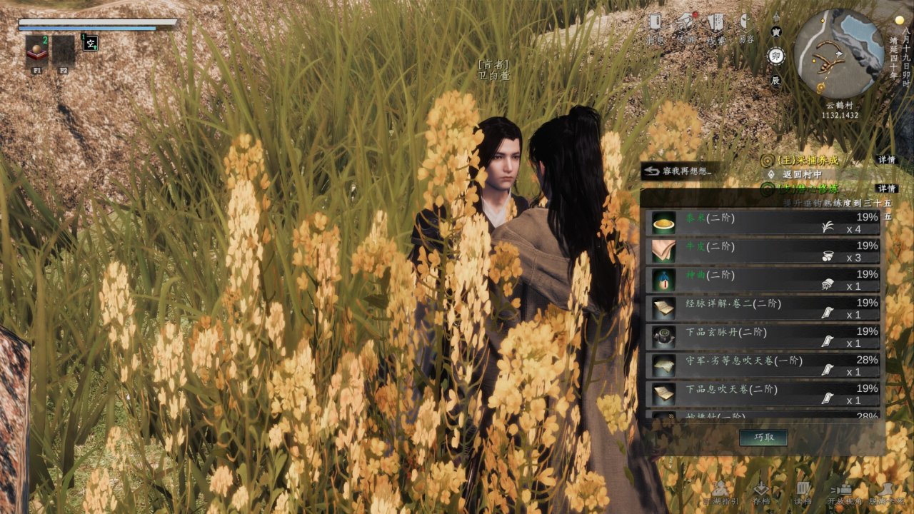 这个人在村里大概(1014.1507)的位置,你会发现一个白发老登,和他进行交谈,就可以拿到一个棋谱和一本功法,都是绿色品质,东西都挺一般,但是我觉得挺有趣的。毕竟谁家好人装高人,结果下五子棋啊