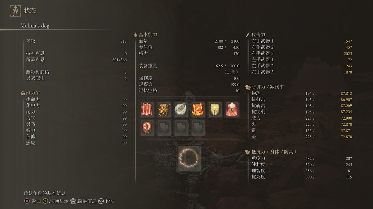 經典的buff構建黃金樹立誓/歸於麾下+火賜力/夏嘶吼,也是大多數玩家常用的buff,但是在dlc裏夏波利利的嘶吼並不推薦開荒和新手使用。用自身25%的易傷換取25%傷害加成大大增加自己暴斃的風險,很多人也忽視了嘶吼帶有嘲諷的性質,招的骨灰和太陽往往拉不到仇恨。火主一刀活和一刀死也關係到太陽的遊戲體驗,太陽的目的是來幫助你擊敗boss,一定要保障自己活着的情況下再去協助太陽。