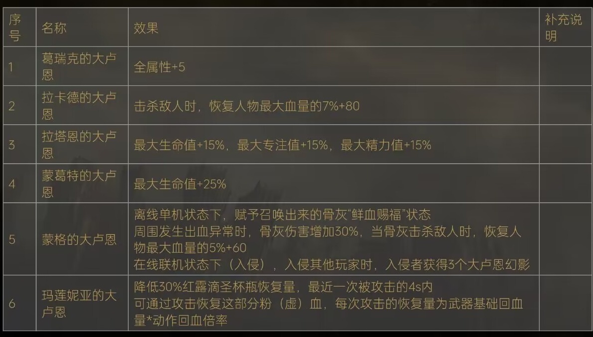 這裏我整理一些主流的buff護符,具體加成列出來,配裝可以參考取捨(葛弗雷也是15%)