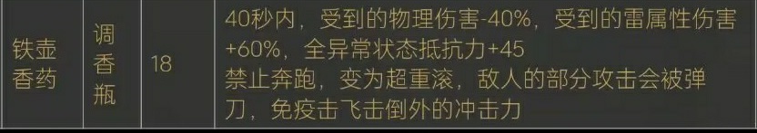 這裏要注意的是,buff除了有衝突也是有優先級的,靈藥>調香瓶>禱告>小零食。比如你使用了鐵壺香藥,那麼優先級低的火賜力再使用是不會頂掉鐵壺香藥的效果,最後的效果依舊是鐵壺香藥。