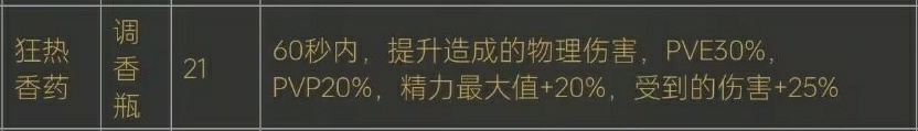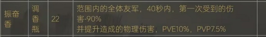 常用的調香瓶有振奮香,狂熱香和鐵壺香,三者可以看做是珍珠泡(振奮香爲羣體buff,加傷給盾),嘶吼(狂熱香免去了嘲諷效果,持續時間更長增傷效果更好)和鉛硬化露滴(鐵壺香全方位完勝,對非雷傷敵人有最高的減傷率)的上位替代。