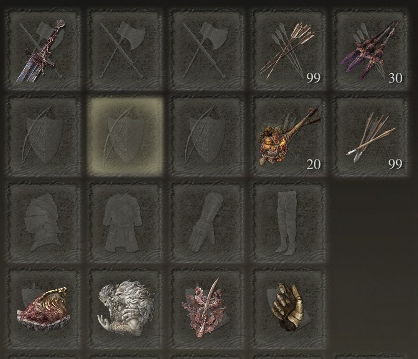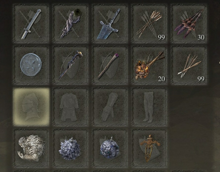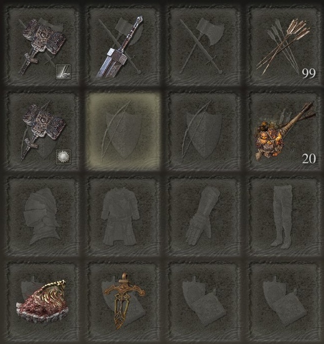 盾牌的選取可以從黃銅盾開始,中間任意大盾(黃金樹欠揍所以羅德爾的大盾各屬性防禦十分優秀)過渡,最後大道至簡厚重質變水泥板