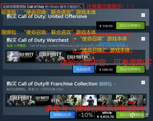 此外關於《使命召喚:決勝時刻》,網上衆說紛紜,有人說是音譯問題,決勝時刻就是使命召喚;有人說是與“聯合進攻”同爲COD1資料片,但在Steam平臺上並未找到相關商店頁面,事實如何有待考究。