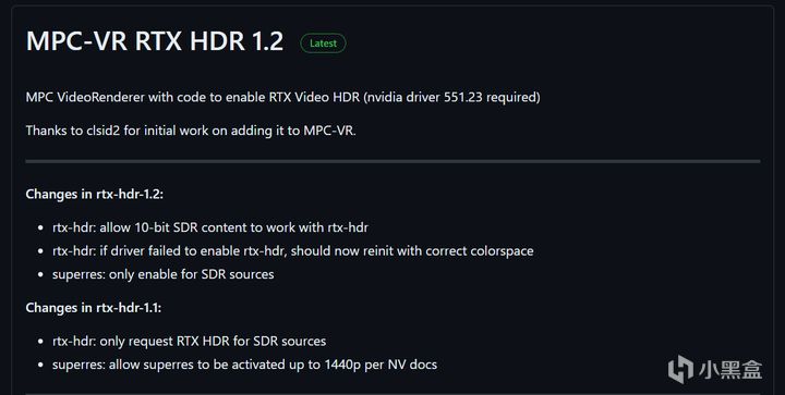 去這裏下載MPC RTX SuperRes的1.1版本