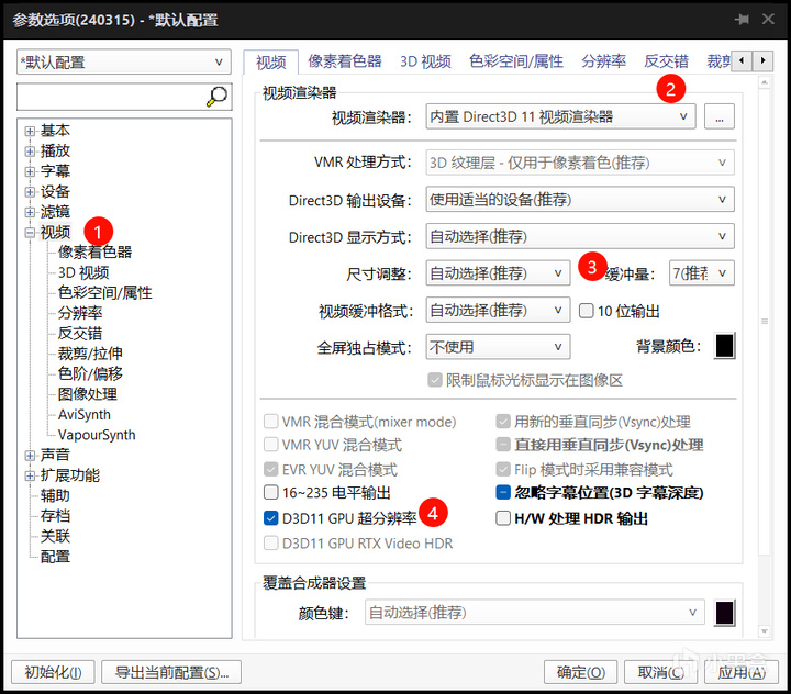 點擊“視頻渲染器”,選擇“內置Direct3D 11視頻渲染器”