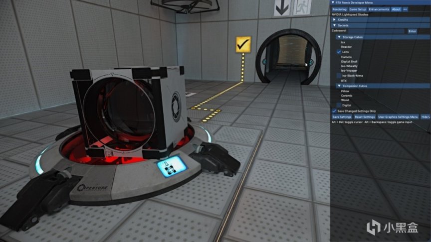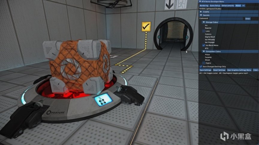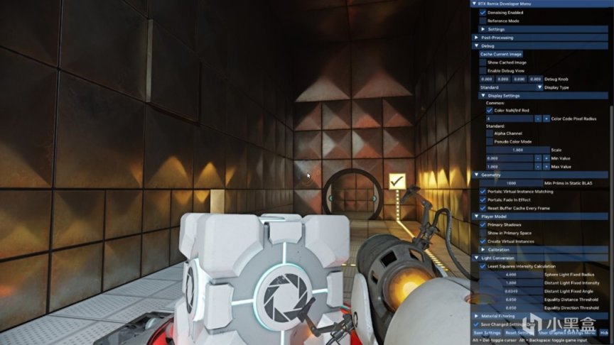 RTX Remix甚至还在游戏中提供了一套场景检测工具,用于后期查看MOD的建模、材质效果,场景照明,后期乃至Debug。在《传送门》RTX版中同样也保留了是这套场景检测工具,通过Shift+Insert组合键,就能调用出检测模式。