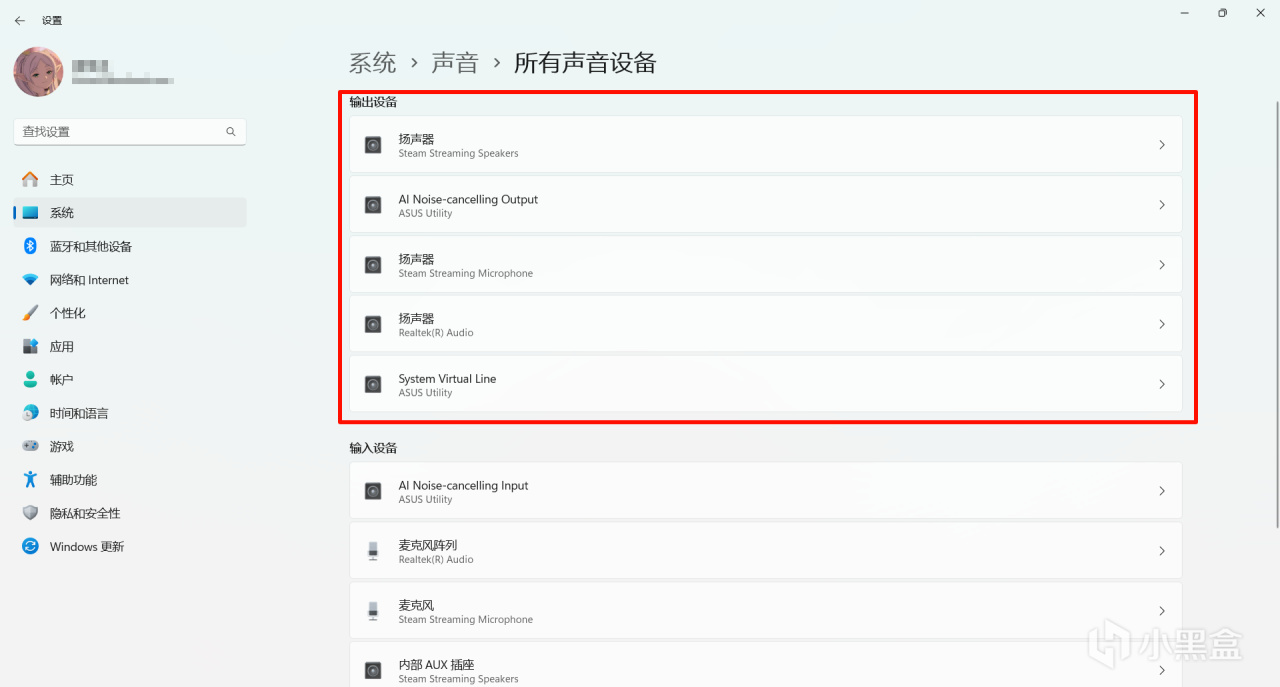 比如作为副屏的便携屏、ps5手柄音频(就没用过)、还有steam官方串流的虚拟音频输出设备(平时用的是Moonlight串流)。