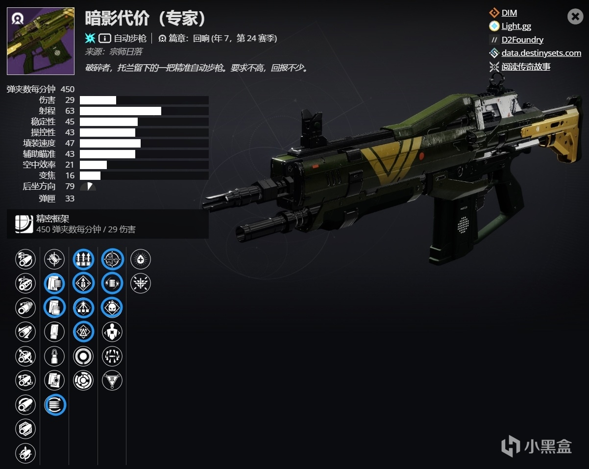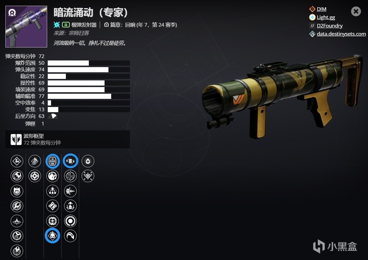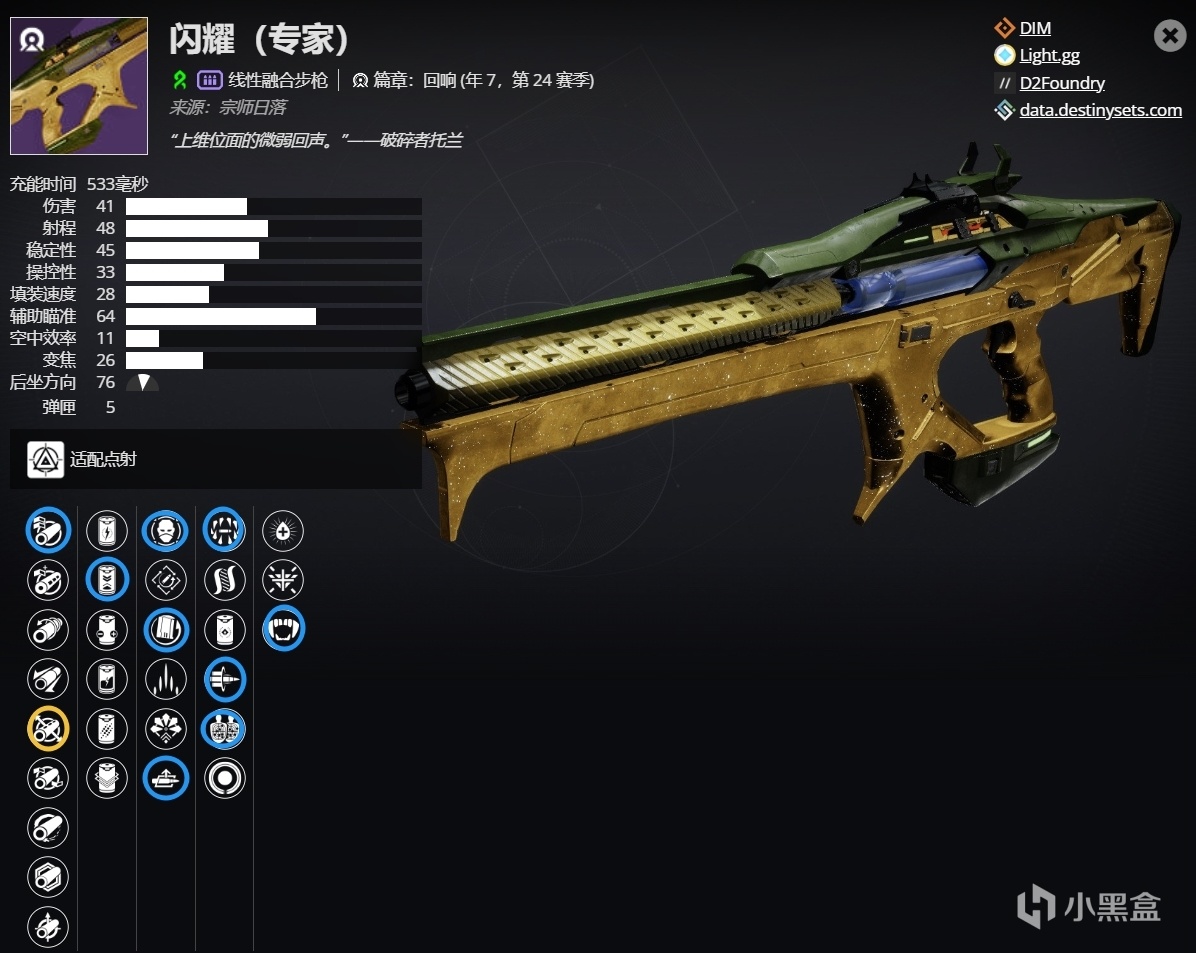 A+级:闪耀(未来可期的输出武器,最通用的组合:回转弹药+诱导推销/火线,刷到嫉妒刺客或者自填的组合也先留着)
