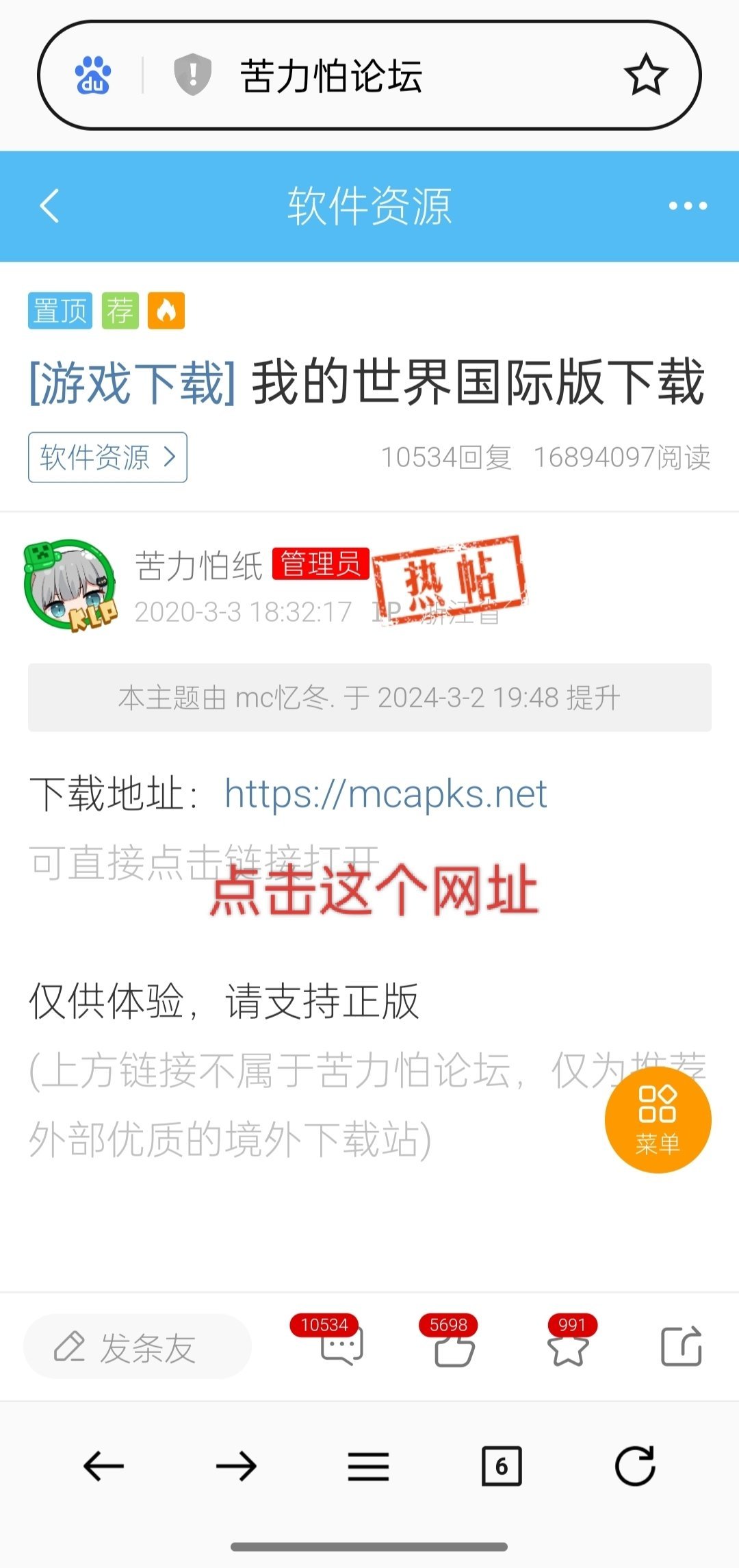 首先打开浏览器搜索苦力怕论坛点击第一个即可。