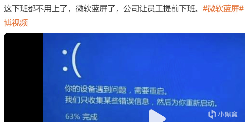 不少用户发帖称,微软系统的故障,自己提前下班。