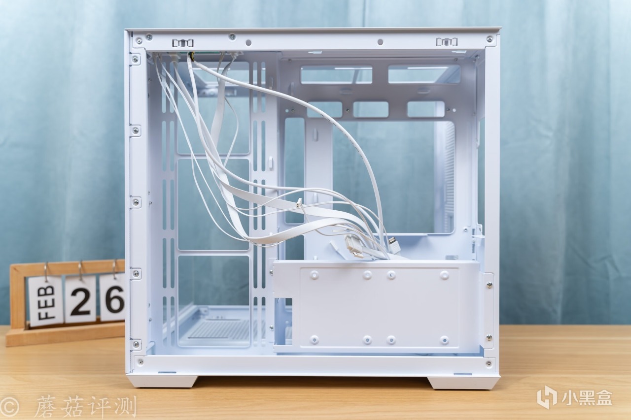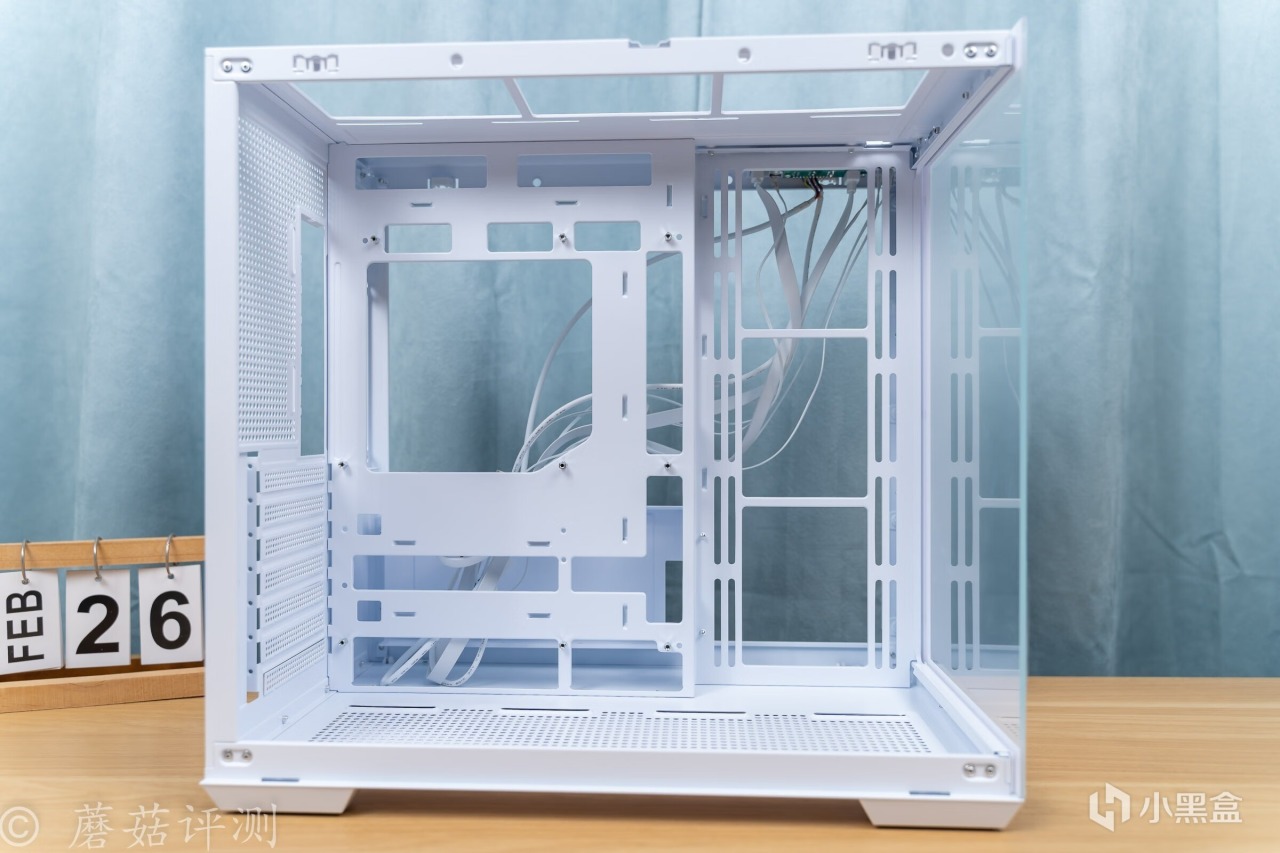 ▼机箱内部的空间非常完整,直接就是一整块的空间,用于安装主板、显卡等,主板四周有丰富的接口,支持背插主板。