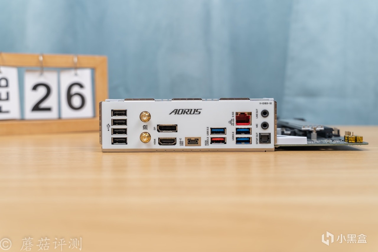 ▼主板的IO接口方面,USB接口数量众多,有4个USB 2.0、三个USB 3.2 Gen1 Type-A、一个USB 3.2 Gen2 Type-A和一个USB 3.2 Type-C 20Gbps,共9个USB接口,日常使用很方便。