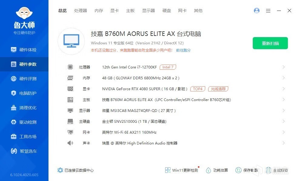 二、又想要好看,又想要省钱,那就12代i7搭配B760主板呗 整机配置一览