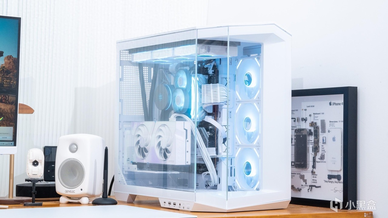 装机难度方面,作为一款ATX机箱来讲微星的这款白刃PLUS并不会有什么装机难度问题。机箱内有三个区域支持安装最大360mm一体式冷排,或者像我这样可以安装多把120mm风扇。毕竟选择海景房机箱,机箱内风扇水冷自然装满了颜值会更高。