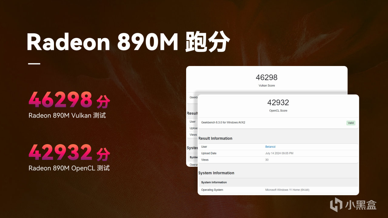 其中Radeon 890M在Vulkan測試中獲得46298分,在OpenCL中獲得了42932分。