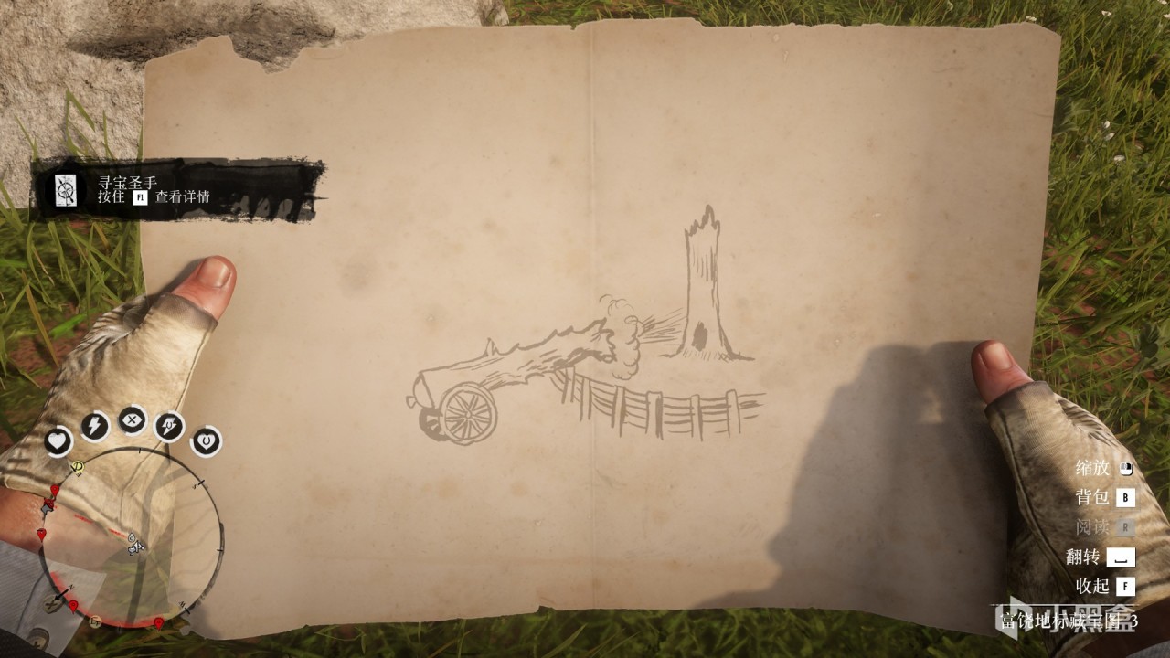 总共5个点位4张藏宝图,大家不能够提前或者直接去下一个点位拿东西,它相当于任务一样一步一步触发的。每一个点位都需要前一个点位的东西。顺序及其位置在下图先给大家,然后下文会有详细的步骤和具体点位。