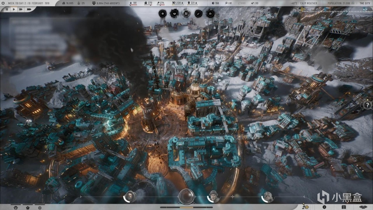 如果說前作的調性會更側重於生存和管理玩法,那麼《冰汽時代2》的調性就明顯地會更傾向於建造和內政方面。地位相對被弱化的生存管理,不僅僅意味着玩家能夠把更多的心思,放到更加深度的對於城市運行邏輯的複雜決策上,也意味着馴化自然的時代正在宏觀技術進步的巨大光環下漸漸走向落幕。