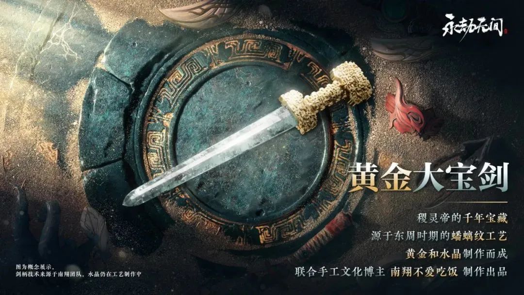 永劫聯合知名手工文化博主@南翔不愛喫飯傾情打造的黃金大寶劍還沒送出去,永劫手遊就說要給全體手遊玩家們都送上一把華夏神兵。