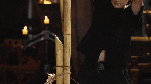 用毛竹對劍的鋒利進行測試是傳統項目,這次採用的更是剛性極佳的毛竹,不過這並難不倒各位師傅。