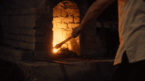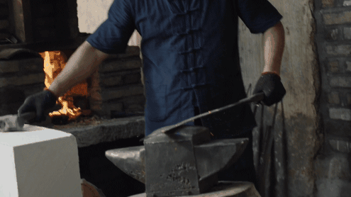劉師傅堅持古法龍泉劍製作工藝,工作10個小時過於疲乏,一時不察溫度把控失誤,鐵材斷裂脫碳,不得不重新配料,次日再戰。