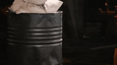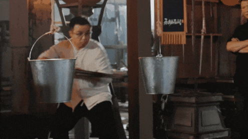 通過穿刺懸吊的鐵桶來判定定秦劍的穿刺能力,周師傅一劍刺出,直接貫穿鐵通兩側!