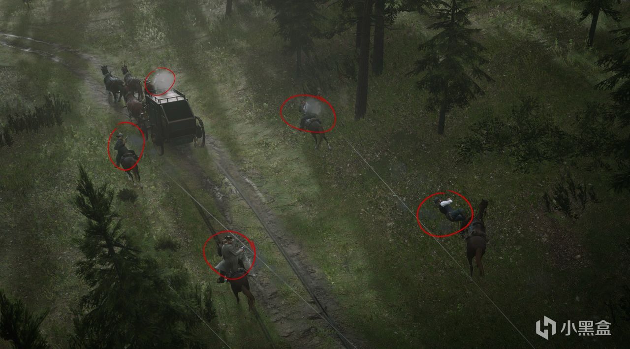 此時注意利用死眼爆頭擊殺所有畫圈的守衛,千萬不要擊殺車伕!!!邁卡騎馬車很慢很慢,所以這裏建議留着車伕,到如下圖所示位置,過畫圈橋洞即可擊殺車伕。這樣可以節省很長的趕路時間。