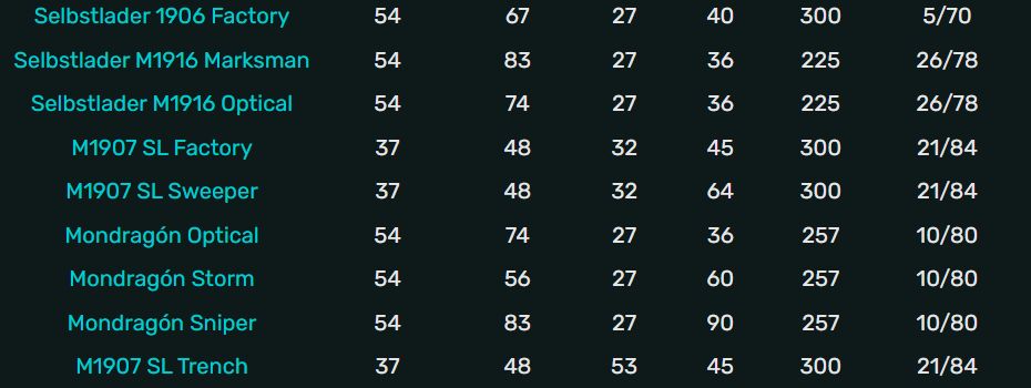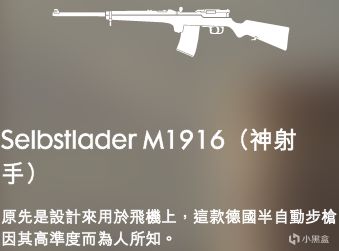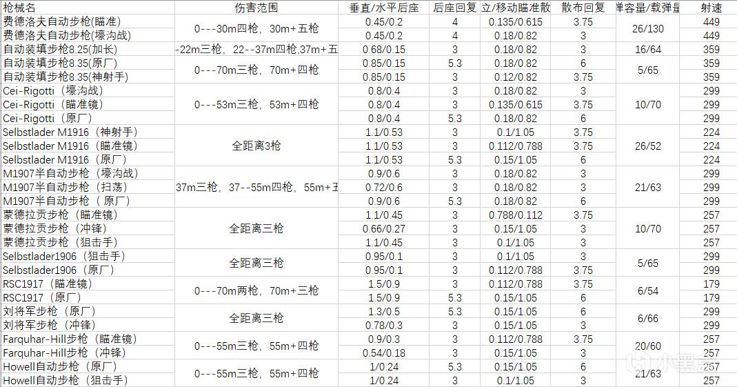 战地一医疗兵半自动武器输出手段主要为连续点射,所以选择一把半自动步枪的参考数据主要有