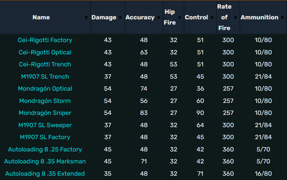 因此我们主要分析半自动模式步枪的武器性能,针对比较特殊的几把枪械单独列出数据。