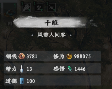 修爲有了,還差感悟丶金錢,其實這兩種東西前期的需求其實並不大,但該有的還得有,尤其是輕功,飛檐走壁丶淩水行走還是很重要的。