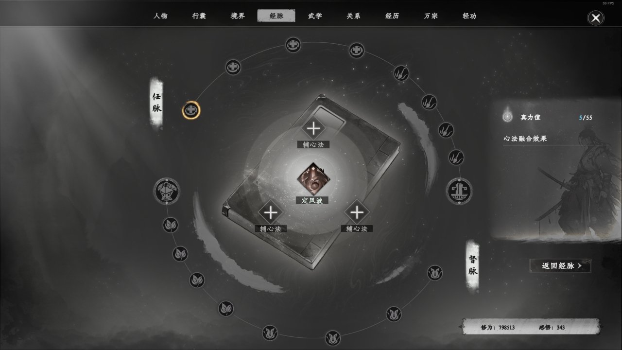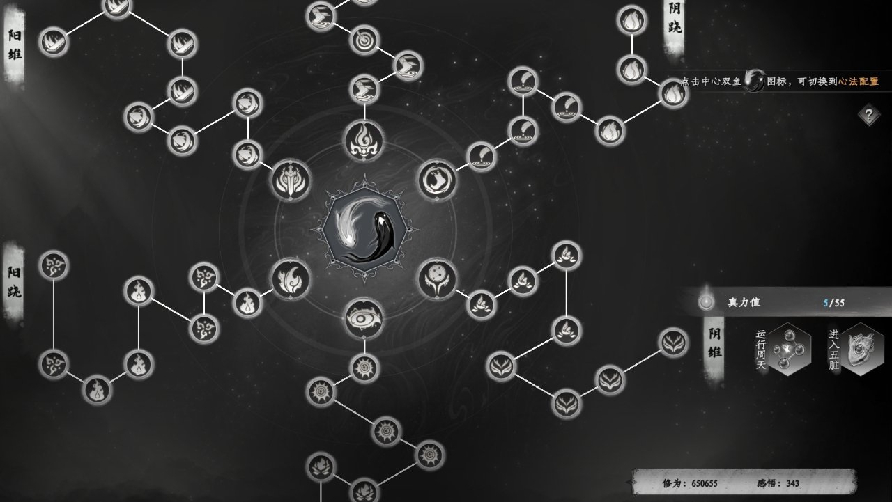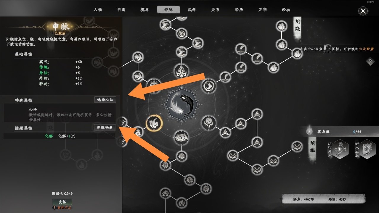 有了修爲後可以將經脈裏能點的都點了,下圖所示有六條經脈,點完後再點中間的,裏面還有兩條經脈。