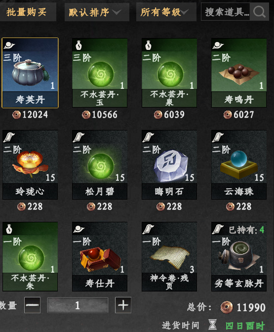 - 可以看到,這裏出售的是前三個境界所需的不水芸丹