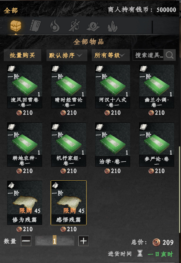 - 將感悟殘篇全部購買(大概能獲得2w左右的感悟),別忘了把其他書也全部買了。