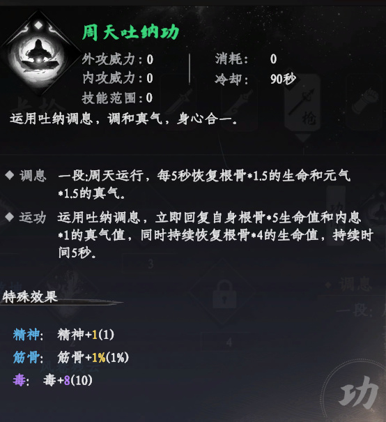 這個功法的作用就是回血,而且恢復量不低,按照我的方法來,氣血大概在6000以上,一個狗皮膏藥,恢復量爲384,這對於6000的基數可謂是杯水車薪,但如果採用功法回血效率就很高了,戰鬥中丶脫戰都可以採用該功法回血,可謂非常實用。