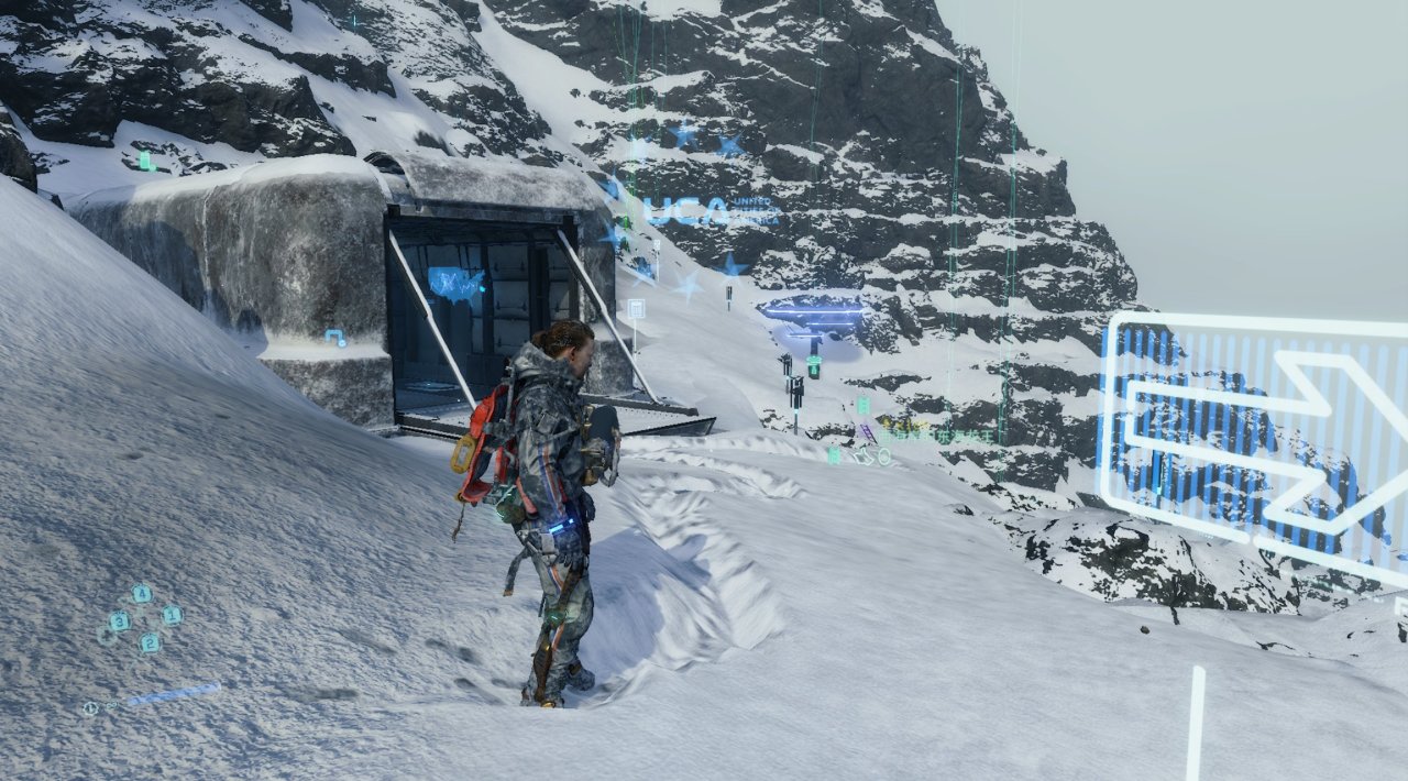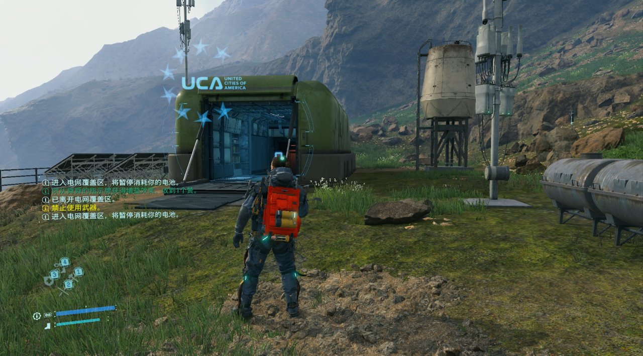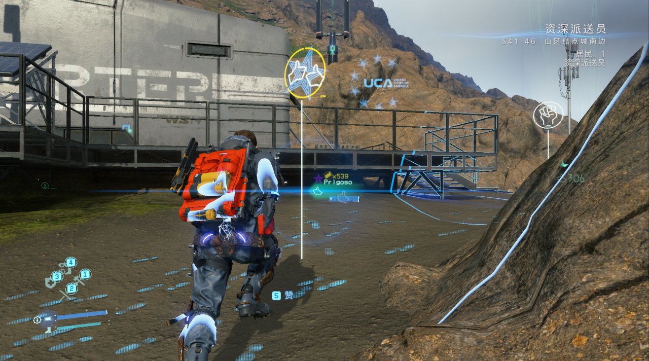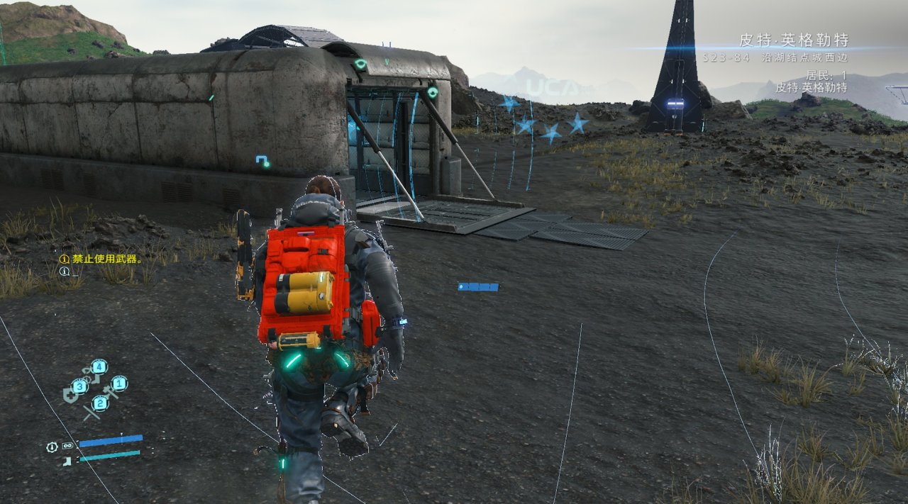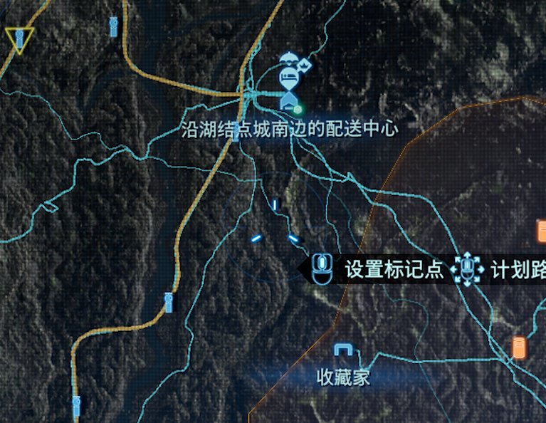这老哥藏得也是贼拉深,他在灵修者家的南边,不过我并不建议大家从灵修者那里过去。如果你修好了从山区结点城去往沿湖结点城南边的配送中心的道路的话,我们就可以开着长途摩托车从沿湖结点城南边的配送中心出发,然后慢慢爬山开到他家去。装备的话建议带上全地形骨架和黏着枪,攀爬柱。