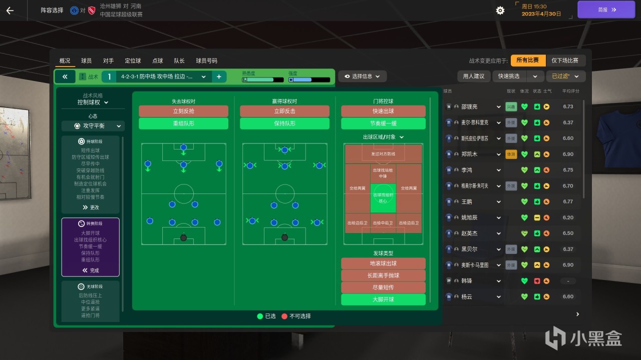 這裏還是選擇每月開始一次董事會,戰術還是選了4231先看看球員表現,設置了一下訓練日程,這裏主要提一下新增內容,比如定位球套路,通過人盯人或者區域盯人或者讓後衛區域防守而其他人盯防等定位球戰術套路,針對定位球角球等指示球員進行兩路或者近門柱盯守,安排球員位置從而影響攻防反擊,罰角球和任意球時傳遞等等選擇,當然你也可以根據教練建議或者全權委託其他教練來進行安排,這項新增元素讓球場變得更加焦灼,球員更爲智能和靈活。