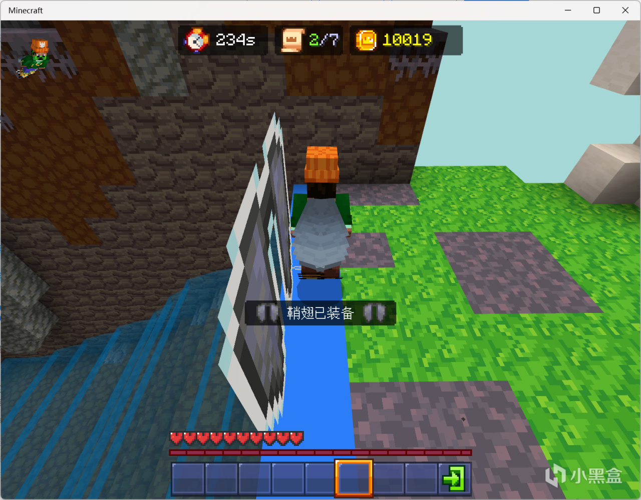帶上粉紅色鸚鵡毛線帽找到下圖所示鞘翅臺,不要着急飛出去,像這樣觸底然後接着穿鞘翅重複25次即可完成任務
