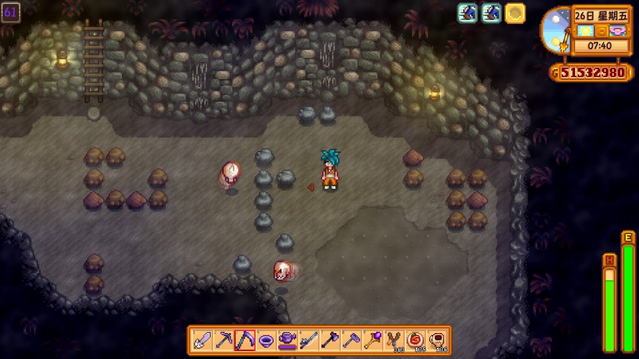 (比如我下面的圖中,是在礦井61層找到了地牢層,那我就先把裏面的幽靈頭骨殺光,然後再用梯子上去,之後使用電梯搭到60層,直接下一層就又是地牢層了,以此重複去刷,直到刷出被詛咒的假人模特爲止)