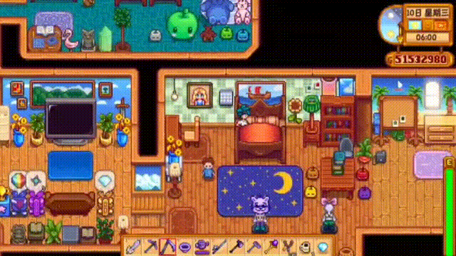 如果我們把這個被詛咒的假人模特放在農舍裏,每當我們醒來時,它都有小概率會移動到我們牀邊,同時這個假人模特還會長出一雙眼睛朝你眨眼,隨後消失,你沒聽錯,這個假人模特復甦了(一旦它發生了移動,你就無法用十字鎬把它挖掉,不過可以使用鋤頭的蓄力功能把它移除)