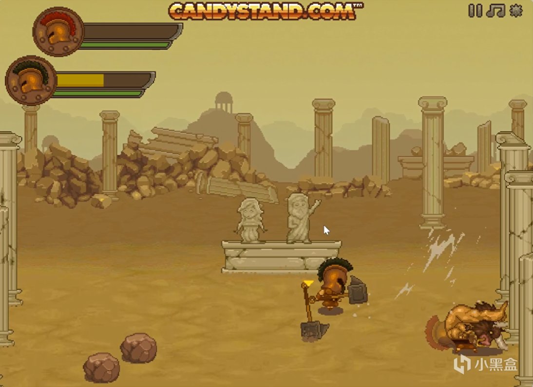 击败了牛头人,我们前往了战场的另一个方向,这里是雅典人的据地。有着手持大锤的士兵,和满身肌肉的壮汉。