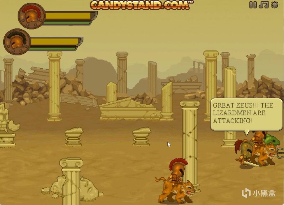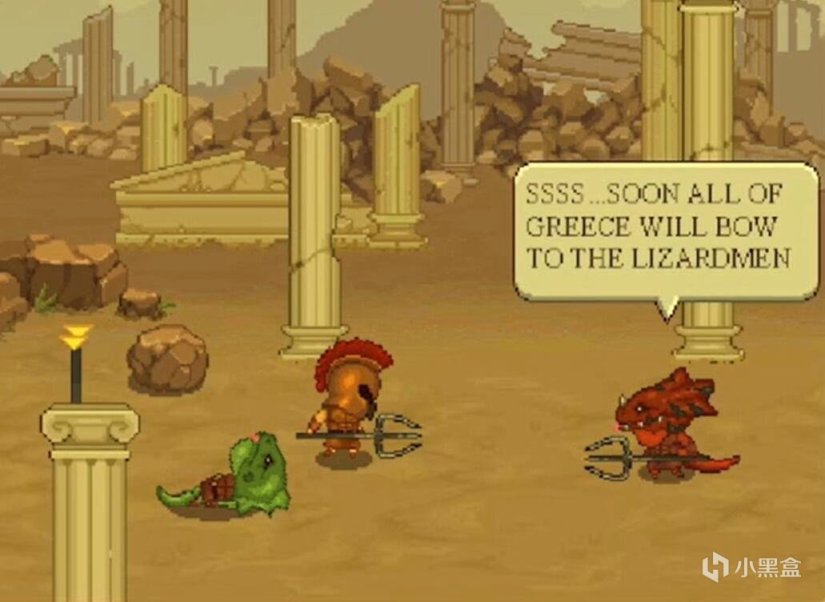 穿越了森林,我们来到一片战场,这里好像有着两波势力在打架。希腊人受到蜥蜴人的大举入侵,祈求能得到宙斯的帮助。