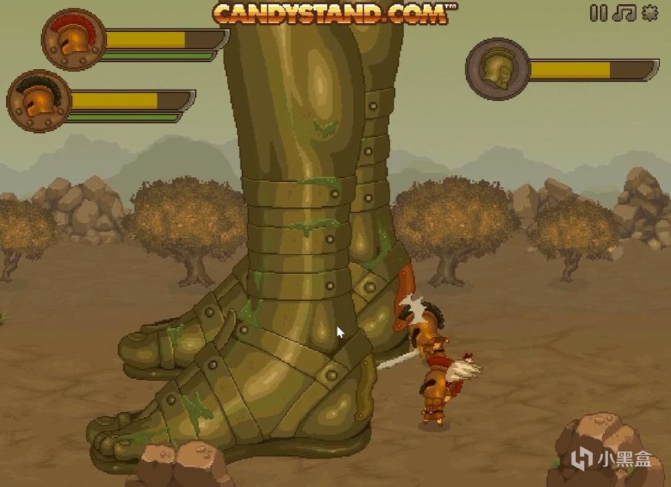 他的全身都是无敌的状态,但脚后跟却是他致命的弱点,发现这一现象的我们也就顺利地击倒了青铜巨人。