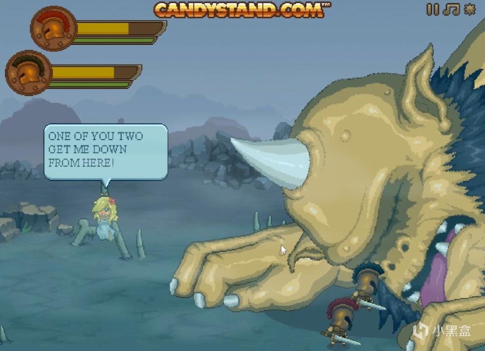 身穿裙子的金发公主被绑在白骨之上,贝希摩斯一声咆哮,战斗拉开序幕。从它的最终会吐出无数的骷髅士兵,它的全身也是无敌的,只有攻击它的眼球才能早成伤害。