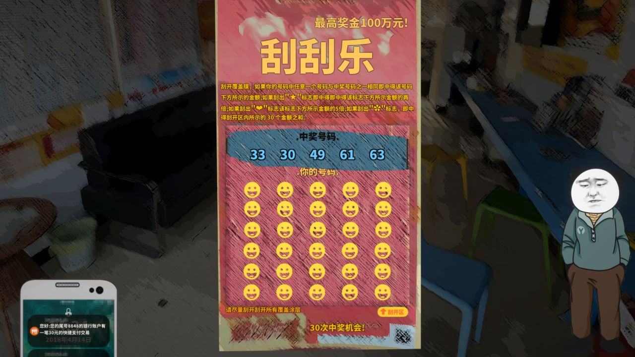 由於體驗時間有限,尾巴其實後續還想開的幾個檔體驗不同的結局,比如把所有家當賣了去刮彩票、或者是認認真真打工加班賺外快攢到30萬的現充玩法、亦或者是一毛不花、還有就是徹底頹廢當個廢柴抽菸酗酒危害社會,尾巴認爲在這個遊戲中隱藏的博人一笑的小彩蛋還有很多,不同的結局導向也會讓我思考更多,我認爲一款遊戲不僅僅是讓人爽,如果能有更深層次的意義那是最好的。