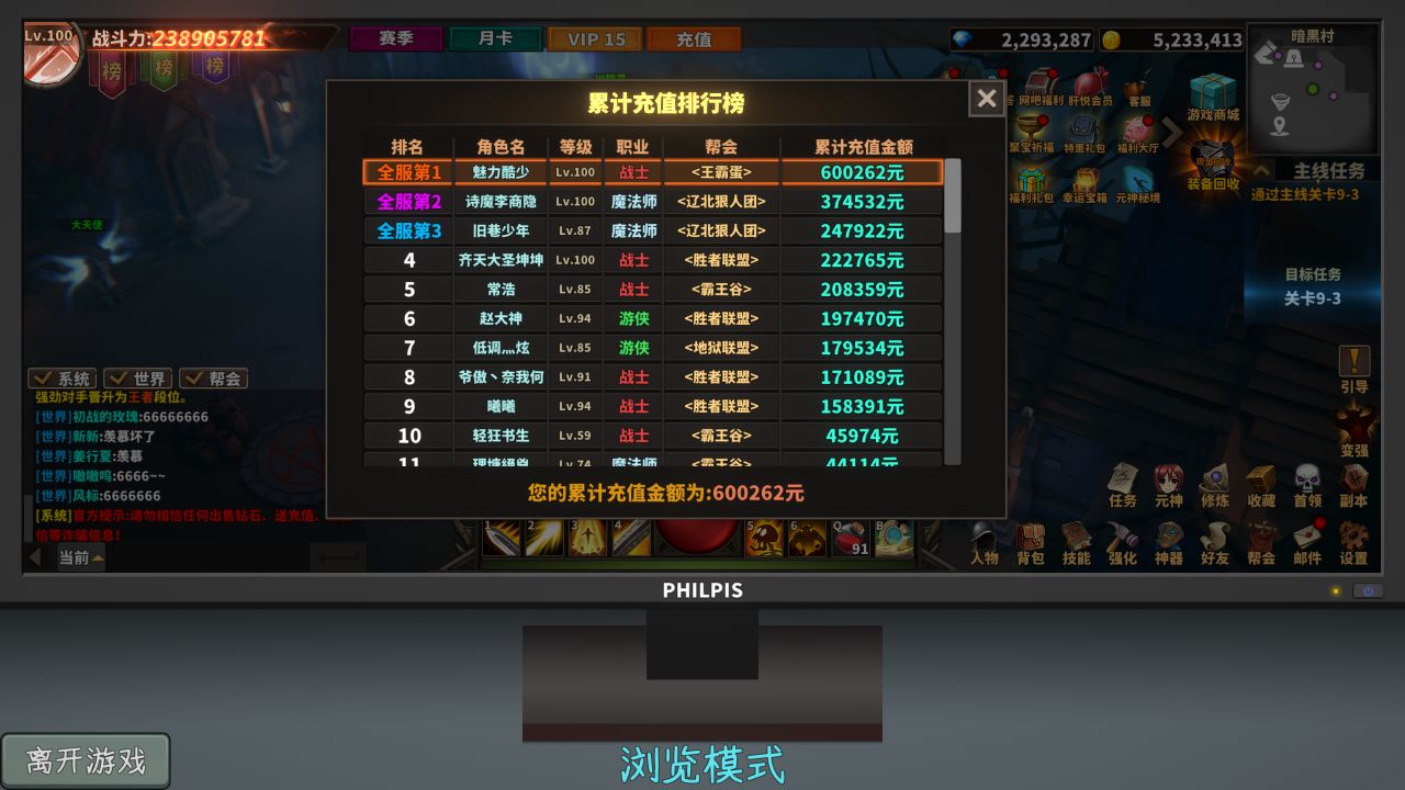 所有的“傳奇”類遊戲的底層爽感邏輯一是提升自身數值完全碾壓別人、二是強化裝備一直失敗之後突破到滿級的釋然感、三就是登頂各種榜單的虛榮心。