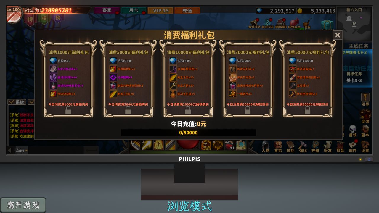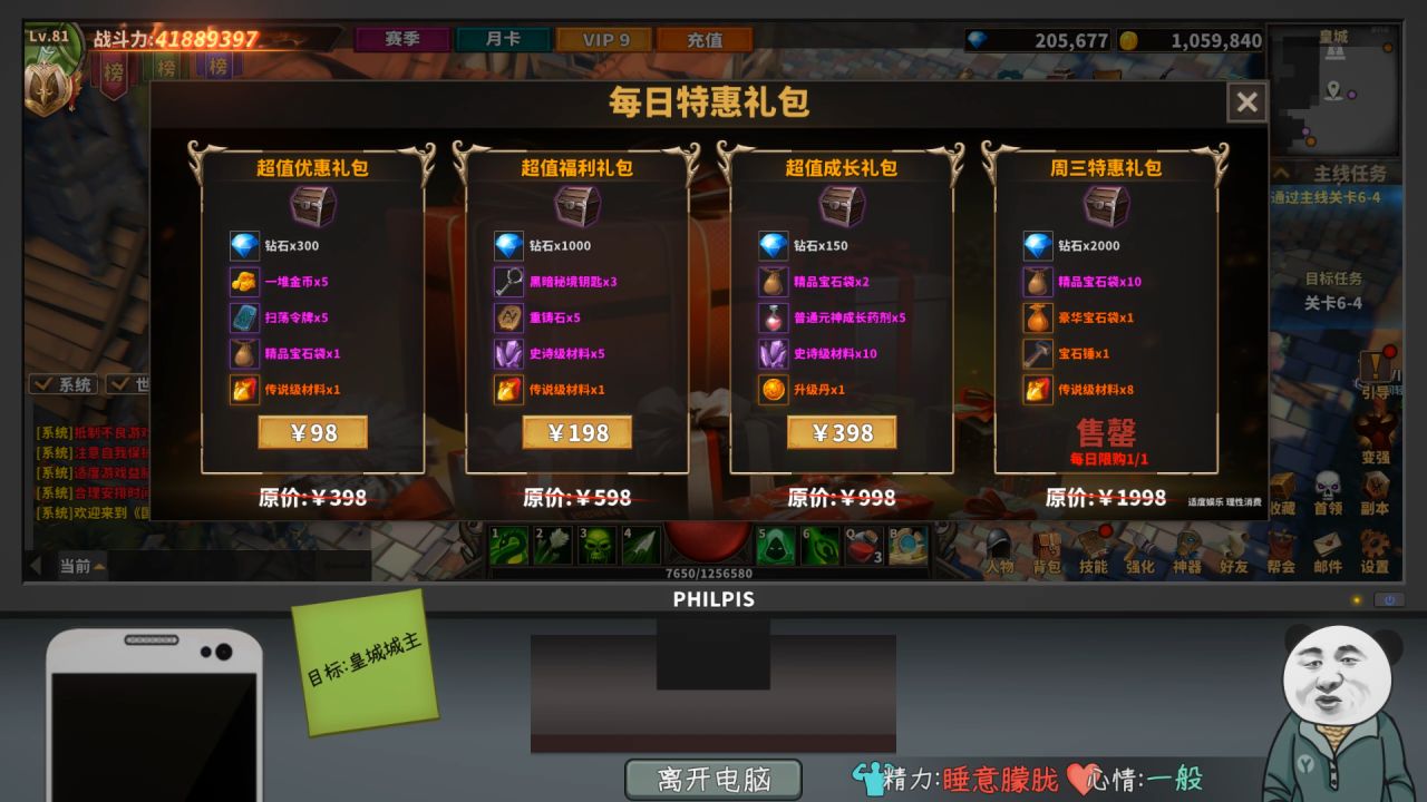 開始重氪之前,先找到每日特惠的398超值成長禮包,直接升級丹氪滿等級,爲後面打基礎,不會出現出了好裝備穿不上的問題,所以這種類型的遊戲主線並不重要。