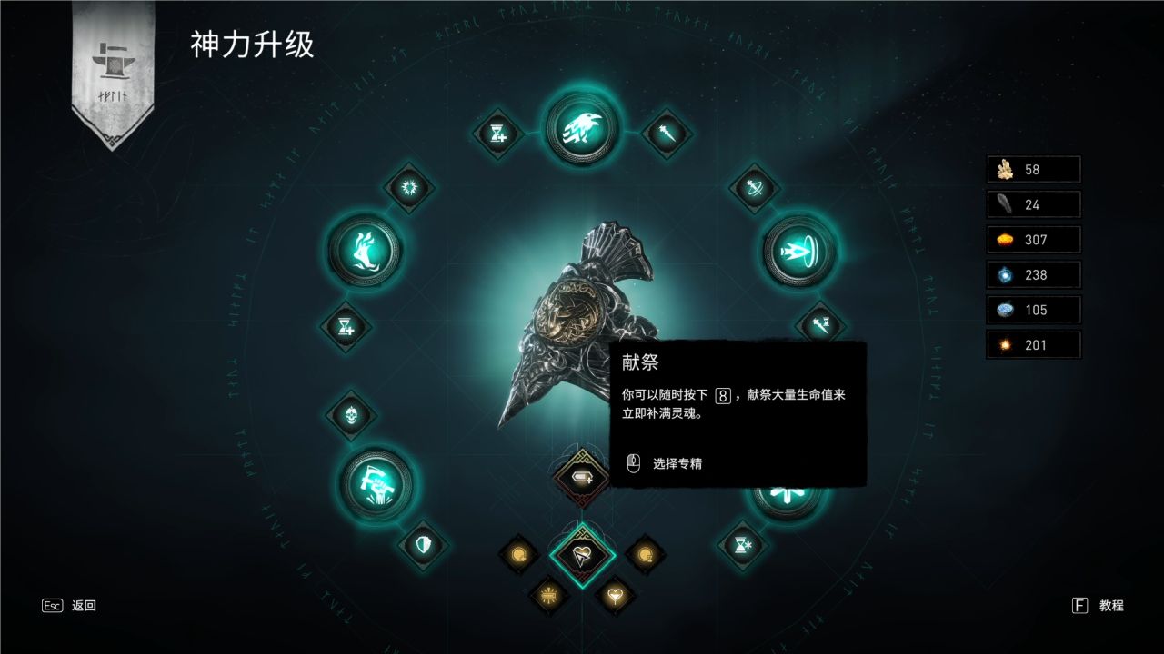 ②材料足够后去铁匠处解锁神力升级,选择下面这个的【献祭】