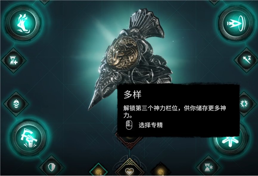 注意:只有拥有并进入DLC3才能使用神力。(单独买/诸神黄昏版/完全版)