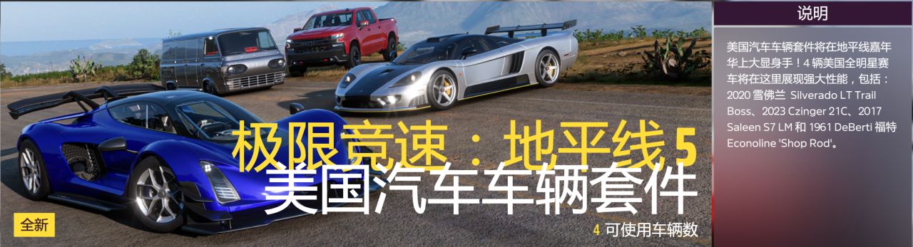 這個車輛套間有:2020 雪佛蘭Silverado LT Trail Boss、2023 Czinger 21C、2017 Saleen S7 LM 和 1961 DeBerti 福特 Econoline 'Shop Rod'。由於本人只喜歡其中一臺車,遂,不買。