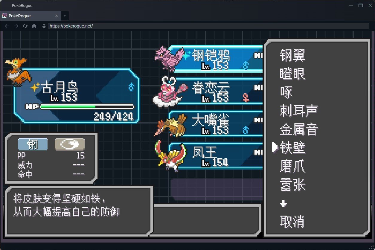 換上古月鳥後,鋁鋼龍又來了,一直用電光束。保護加鐵壁無傷強化,再鐵頭創死他後接棒給眷戀雲推隊了