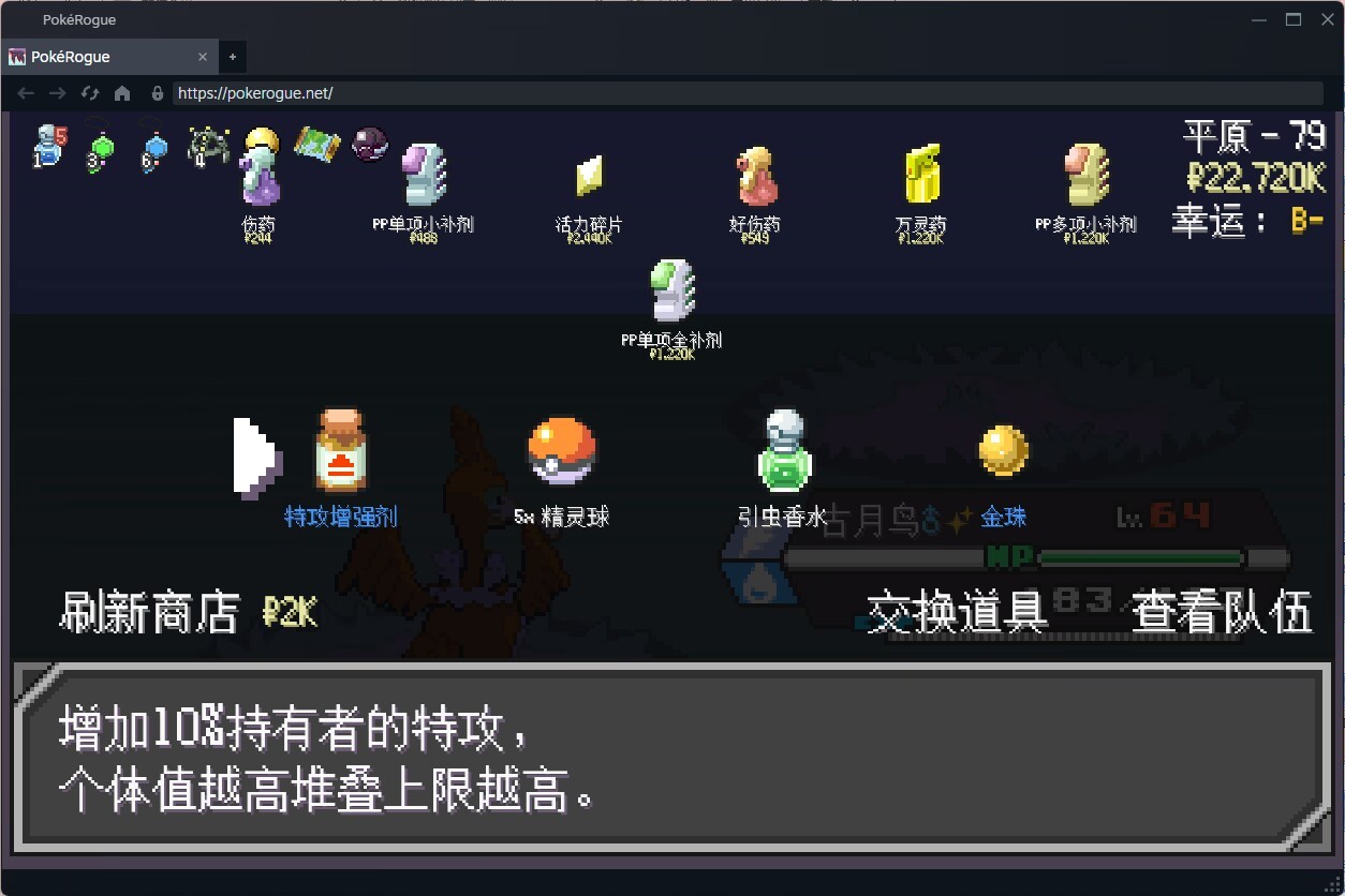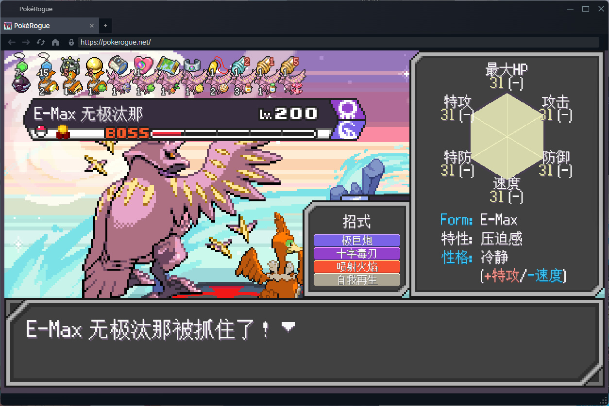 之前看了本小說主角帶着魔法修改的6個255種族值的閃光古月鳥穿越了,看看這把古月鳥的表現